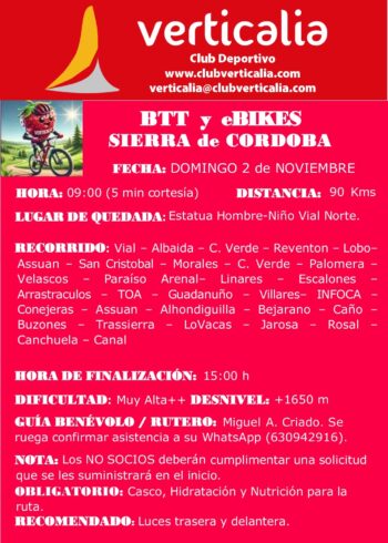 Estimad@s soci@s El próximo domingo 2 de noviembre de 2025 se celebra el XI Encuentro de Clubes de Montaña de Córdoba – Ruta Solidaria Banco de Alimentos, en Nueva Carteya. Todos los participantes recibirán una riñonera de regalo. Habrá un punto de escape en el km 13, para quien quiera participar pero acortar el recorrido. […] |