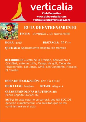 Ruta Colores de Otoño Dehesa del Camarate Sierra Nevada Lugros, Granada Sábado 15 de noviembre Folleto informativo Apertura de inscripciones jueves 06 de noviembre a las 22:00. https://docs.google.com/forms/d/e/1FAIpQLSfJkHSl08ZYGnrYMnm0GbCcWcTwb1iZ9iiStnby4mLoNXTuDw/closedform Actividad en autobús si hay 30 inscritos a 27 € , en caso de no tener cupo seria la actividad en coches particulares. Socios federados tienen preferencia […] |
