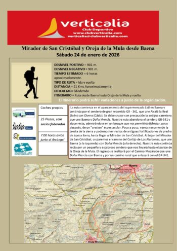 Ruta desde Baena hasta el Mirador de San Cristóbal y vuelta por el paraje de la Oreja de la Mula.