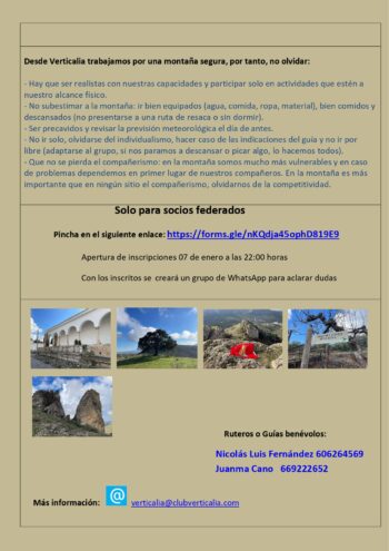 Inscripción lista de reserva Mirador de San de Cristóbal y Oreja de la Mula desde Baena: https://docs.google.com/forms/d/1ETul-2DwXkjxz9zylG0s8ALUFSn0jmY0_8fsuy05O88/viewform?edit_requested=true