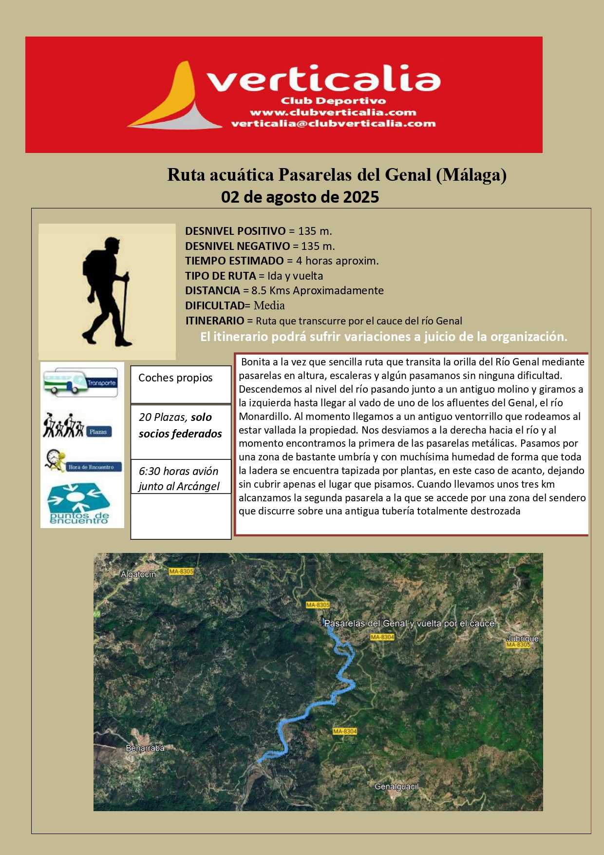 El nº de plazas está limitado a 20 personas socias federadas y con los inscritos se creará un grupo de Whatsapp para la información a todos los miembros inscritos.