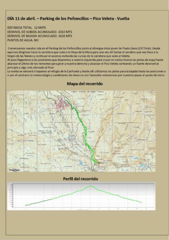La vuelta se valorará si bajamos al refugio de la Carihuela y desde allí utilizamos las pistas para la bajada hasta las posiciones o si por el contrario la meteorología y condiciones de nieve no son favorable volveremos por nuestros pasos al punto de inicio.