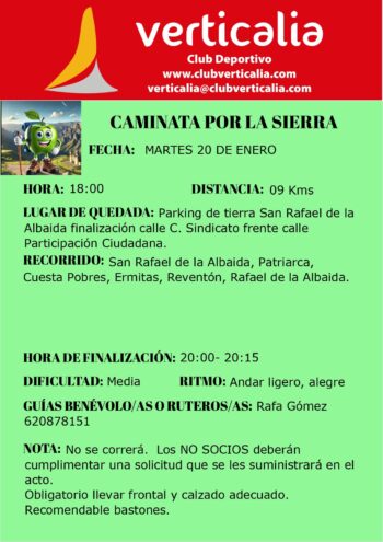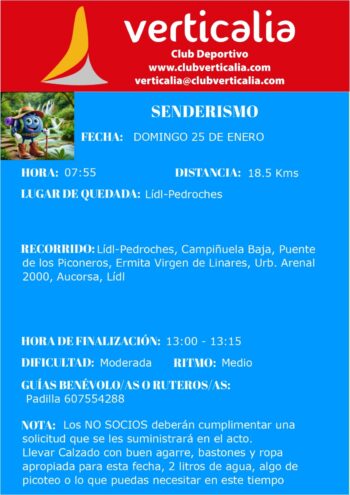Ruta circular que transcurre por el Parque Natural Sierra de Hornachuelos. Las inscripciones se abrirán el próximo día 11 de enero a las 22:00h. Documento pdf con la información. Para inscribirse pinchar en el siguiente enlace: https://docs.google.com/forms/d/e/1FAIpQLSc0dwhGs1B8WLx7N3KnmAlDYYbzxQHzhMqPFPYGqBLtbHdhlg/closedform |
